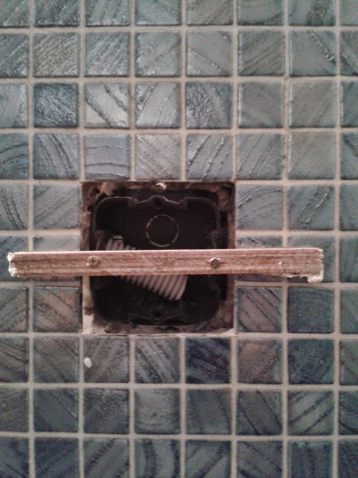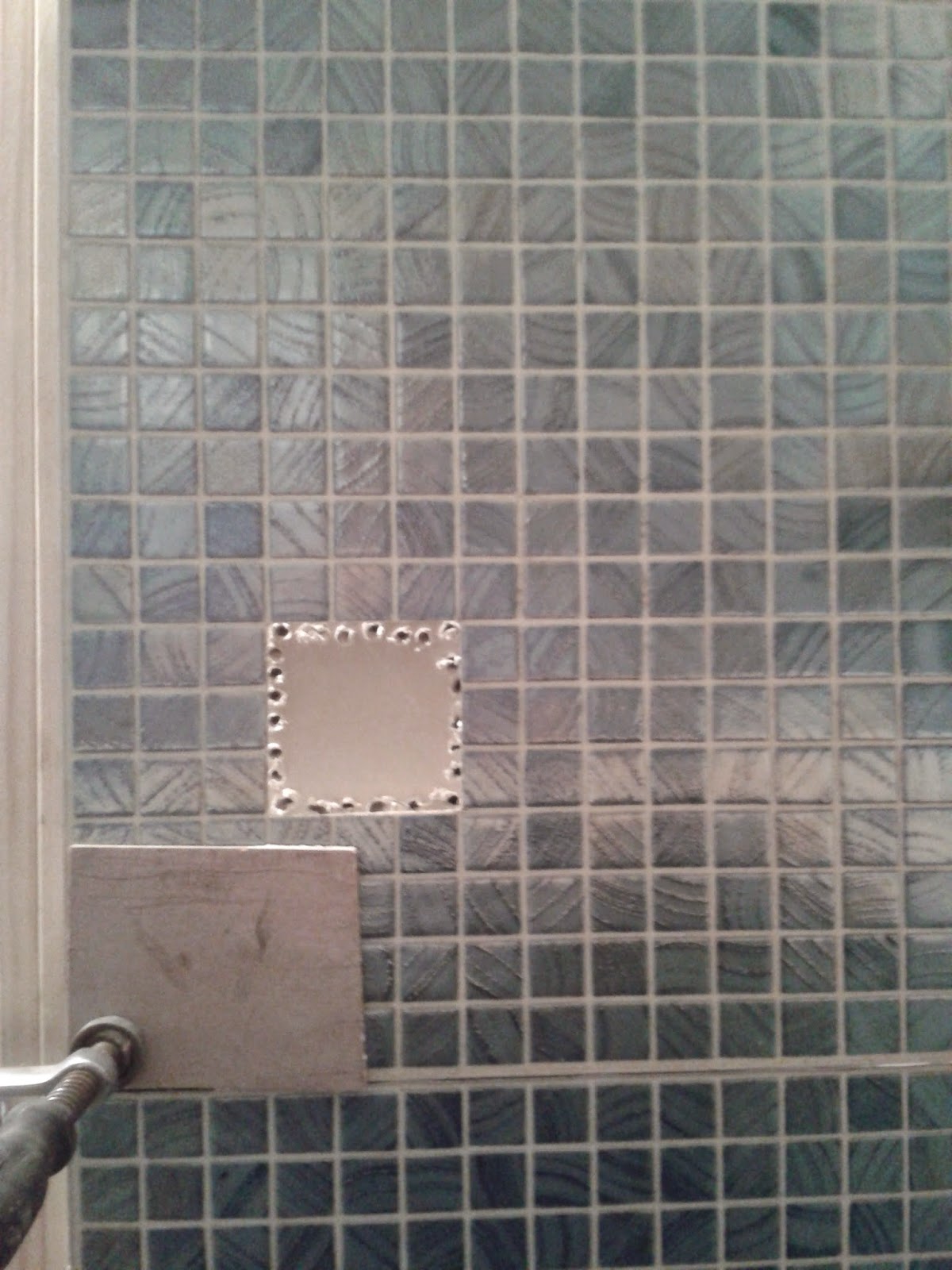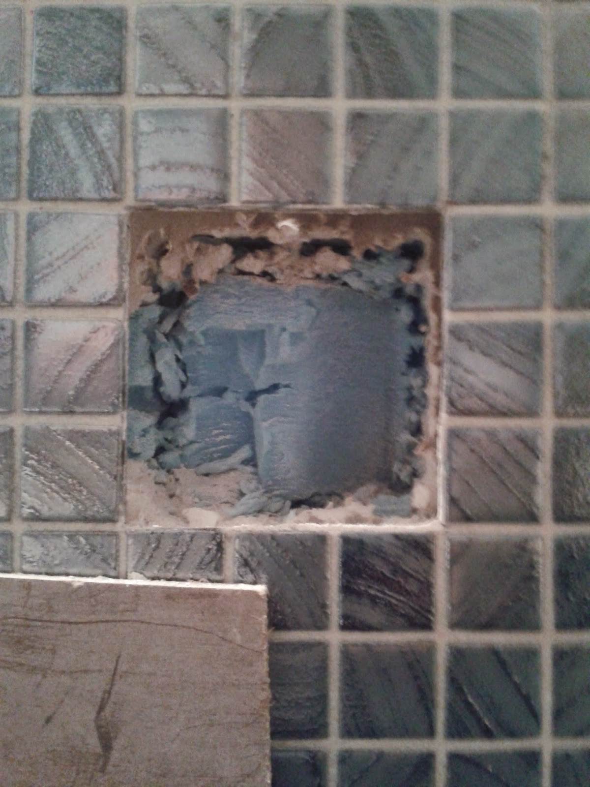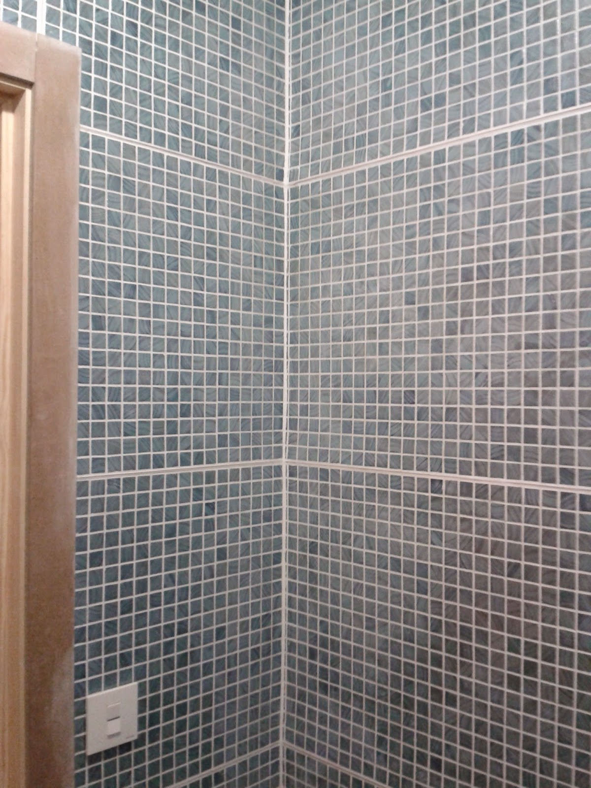 Hoy azulejamos el baño con un material que ha sido donado a M-etxea.