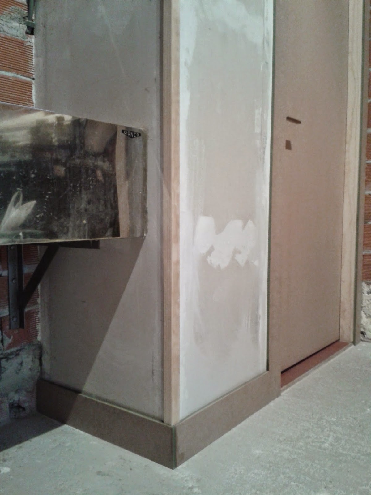 En el suelo colocamos el zócalo del mismo material (Fenólico).