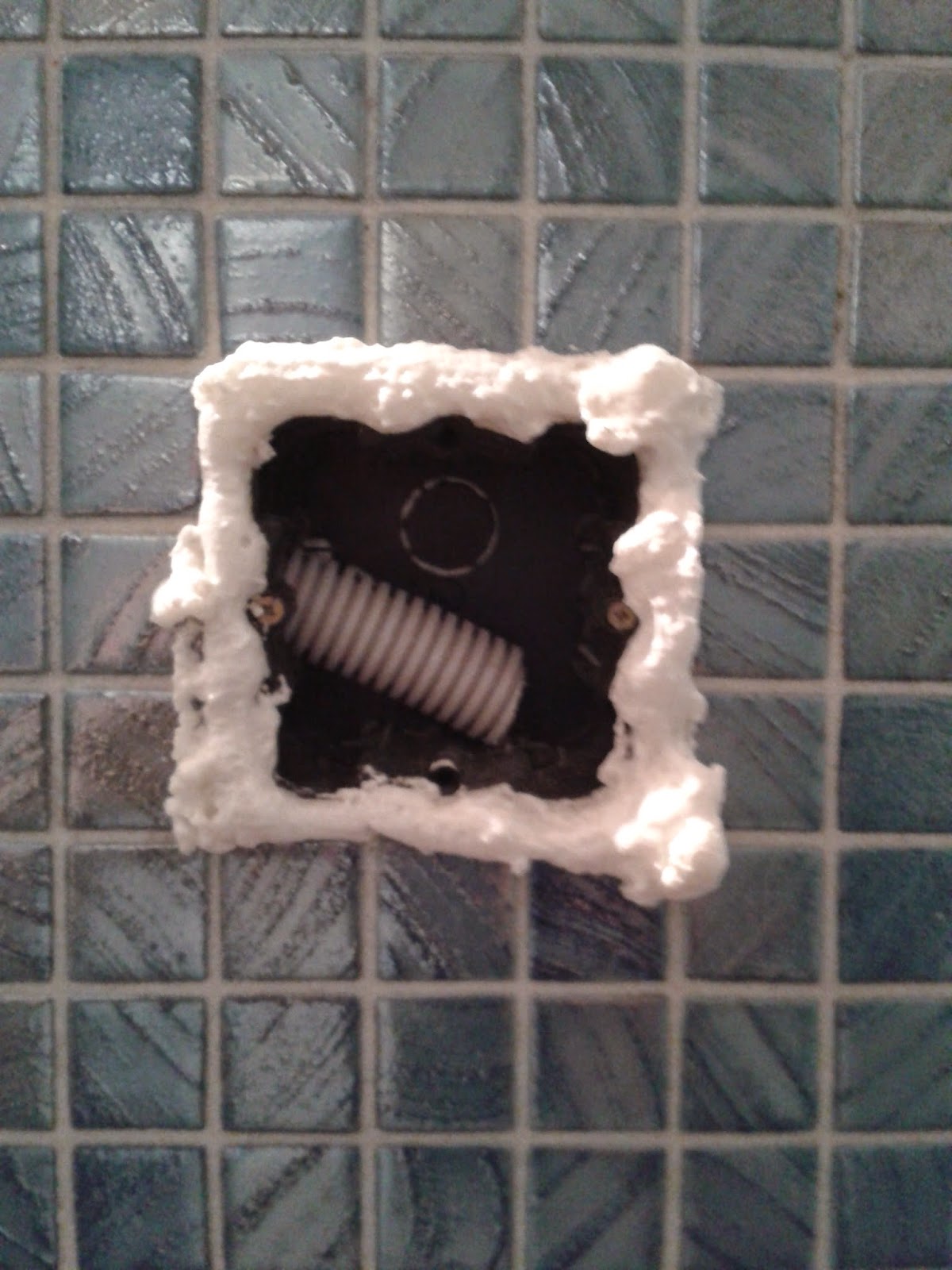 El tubo guía lo vamos fijando con espuma de poliuretáno de la forma más adecuada para que luego pasen los cables sin problemas.