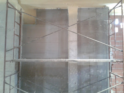 Vamos colocando piezas aprovechando las medidasComo tenemos mucha altura nos toca montar el andamioYa estamos llegando arriba poco a poco